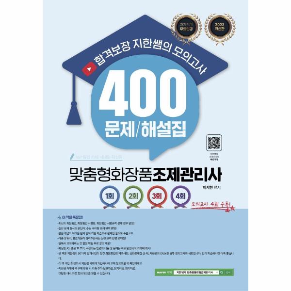 2023 합격보장 지한쌤의 맞춤형화장품조제관리사 모의고사 400 문제 / 해설집 : 저자직강 무료인강