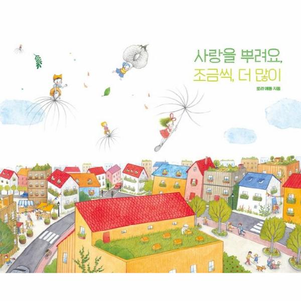 《사랑을 뿌려요, 조금씩, 더 많이》는 우리가 흔히 보는 민들레가 어떻게 피고 지고 다시 또 자라나는지를 보여주는 그림책입니다. 흔히 민들레씨가 싹을 틔우고, 꽃을 피우고, 새하얀 열매를 맺고, 바람에 날려가 새로운 곳에 정착하는 과정을 담은 그림책이라고 하면 정보 전달이 중심일 거라 생각하기 쉽습니다. 그런데 생물학을 전공한 그림책 작가 로라 에동은 민들레 생태를 알기 쉽게 표현한 것은 물론, 민들레와 함께 지내는 가상의 캐릭터를 등장시켜 눈길을 끕니다.