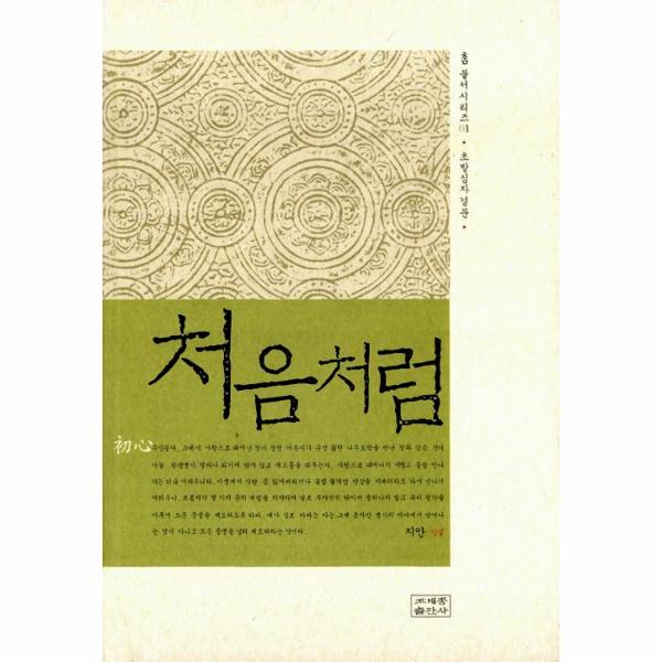 초심은 순수한 신심이다. 이 초심이 지켜져야 불교 공부도 꾸준히 할 수 있다. <처음처럼(初心>은 순수한 신심을 일으키는 경전인 <초발심자경문>을 강설한 책으로, 세 가지 과목을 합쳐서 부른다. 〈계초심학인문〉,〈발심수행장〉,〈자경문〉을 합쳐놓은 본으로 예로부터 불교 입문의 필독서로 여겨졌으며, 특히 승가 교육에 있어서 사미과(沙彌科의 기본 교재로 사용되어 수행에 임하는 기본자세와 정신을 가르쳐 왔다. 최근에는 스님들은 물론이고 일반인도 많이 읽고 공부하는데, 이 책이 도움이 되리라 여겨진다.