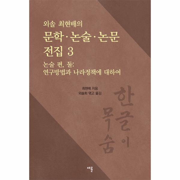 제2, 3권은 외솔이 남긴 글 가운데 논설문과 설명문 등을 묶은 것이다. 그 가운데 이번 3권은 ‘연구방법과 나라정책’에 대해 다룬 글을 모아 담았다.