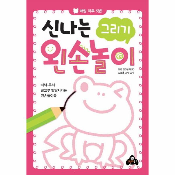 좌뇌와 우뇌는 서로 정보를 주고받으며 하나의 통합된 사고를 이끌어내기 때문에 영유아기부터 좌뇌와 우뇌를 균형 있게 개발하는 것이 중요합니다. [신나는 왼손놀이 시리즈]는 좌뇌가 더 발달할 수밖에 없는 오른손 생활에 익숙한 아이들의 두뇌를 골고루 발달시켜주는 놀이북입니다. 하루 5분, 1~2장 왼손쓰기 훈련은 우뇌뿐만 아니라 좌뇌도 자연스럽게 발달시키면서 창의력과 사고력을 동시에 높여줄 것입니다.