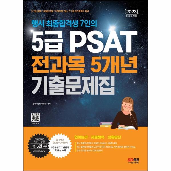 『2023 행시 최종합격생 7인의 5급 PSAT 전과목 5개년 기출문제집』은 2022년 2월 26일에 치러진 5급 PSAT를 포함하여 2018~2022년 시행된 5급 PSAT 시험의 기출문제를 상세한 해설과 함께 수록하였습니다.