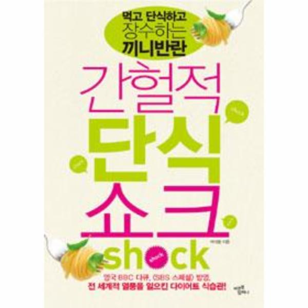SBS 스페셜 <끼니반란>의 방영 후 폭발적인 반응을 일으킨, 가장 쉬운 다이어트 간헐적 단식! 이미 답답하고 짜증나는 다이어트에 질려 버린 당신에게 제안하는 단 하나의 확실한 성공 비법! 내 몸이 가벼워지고, 예뻐지며, 건강도 챙길 수 있는 다이어트 방법! 간헐적 단식. 해 보면 포기하게 되는 다이어트와는 다르다. 누구나 할 수 있고 쉽게 적응하며, 빠른 효과까지 기대할 수 있는 다이어트 방법은 간헐적 단식뿐이다. 이 간헐적 단식의 기적 같은 효과를 알려 주는 책 《간헐적 단식 쇼크》가 미르북컴퍼니에서 출간되었다.