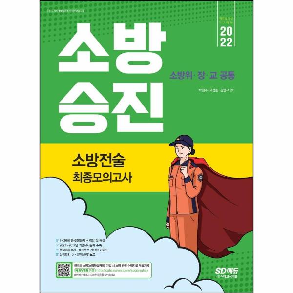 <2022 소방승진 소방전술 최종모의고사>는 모의고사 문제집이지만 책 안에 이론과 학습한 이론을 확인해 볼 수 있는 실력확인 OX문제와 빈칸노트, 2017년부터 2021년까지 총 5개년의 기출유사문제, 26회분의 모의고사와 그에 따른 정답 및 해설이 들어가 있는 책입니다. 따라서 책 한 권으로 소방전술의 모든 것을 끝낼 수 있는 올인원 교재라 할 수 있습니다. 소방승진 시험에 직접 도전하고 합격했던 저자분들이 노하우를 가지고 집필한 믿을 수 있는 이 책을 선택하셔서 소방전술 과목에서 좋은 결과 얻으시길 바랍니다.