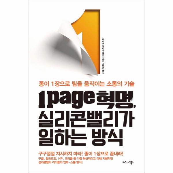 육군 장교, 맥킨지 컨설턴트, 실리콘밸리의 기업을 비롯해 다양한 기업에서 리더십 관련 교육을 하며 수많은 리더를 만나온 저자 마이크 필리우올로는 전문적이고 복잡한 경영 문제를 간단한 워크시트로 해결하는 특유의 장점을 발휘해 종이 1장으로 팀을 움직이는 방법을 고안하였다. 바로 팀의 목표와 원칙을 1줄의 문장, 1장의 종이로 정리하고, 그것을 팀원 전체가 공유하는 ‘1page 혁명’이다. 필리우올로는 이렇게 정리된 원칙을 ‘1page 행동 원칙’이라 부르며 이것을 만들고 팀에 온전히 공유한다면 팀의 생산성, 효율성, 신속성 등을 극적으로 증폭시킬 수 있다고 말한다.