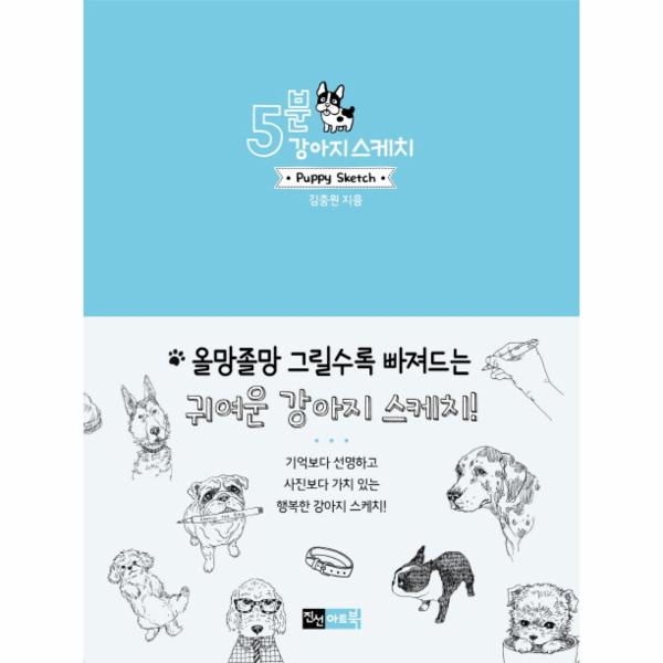 《5분 강아지 스케치》에서는 우리 주변에서 흔히 볼 수 있는 몰티즈, 치와와, 푸들을 포함하여 그레이 하운드, 프렌치 불독, 웰시코르기 등 45종의 다양한 강아지를 직접 그려 볼 수 있다. 올망졸망 귀여운 강아지들을 스케치하다 보면 어느덧 슬며시 입가에 웃음이 피어오른다.