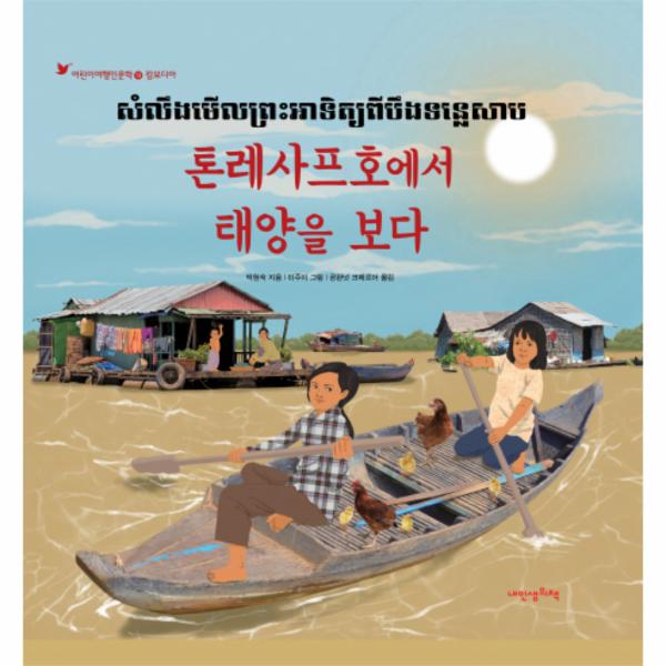 《톤레사프호에서 태양을 보다》는 다른 언어를 사용하는 독자들이 한 권의 책으로도 소통하고 공감할 수 있도록 크메르어와 한글을 함께 썼어요. 캄보디아 출신의 선교사이자 이주 노동 문제 자원 활동가인 공완넛 선생님께서 직접 한글을 크메르어로 번역해 주셨어요. 주캄보디아 한국 대사관에서 캄보디아 국왕-한국 대표단 면담, 한국 대통령-캄보디아 총리 면담을 통역하셨던 공완넛 선생님은 지금은 ‘캄보디아 수원드림센터’에서 캄보디아 근로자와 결혼 이민자를 위해 한국어 교육, 상담 및 통역 활동을 펼치고 계세요. 두 나라의 언어와 문화를 비교하며 호기심을 느끼고 함께 생각을 나누는 것, 서로를 이해하기 위한 첫걸음일 거예요.