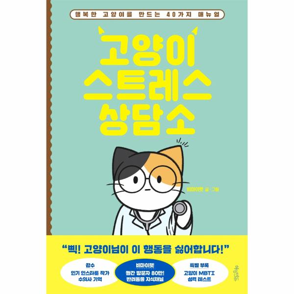 월간 방문자 80만의 국내 대표 반려동물 지식채널 ‘비마이펫’의 첫 고양이 집사 지침서. 세상에서 가장 쉽게 행복한 고양이를 만드는 40가지 매뉴얼을 담은 ?고양이 스트레스 상담소?를 소개한다.