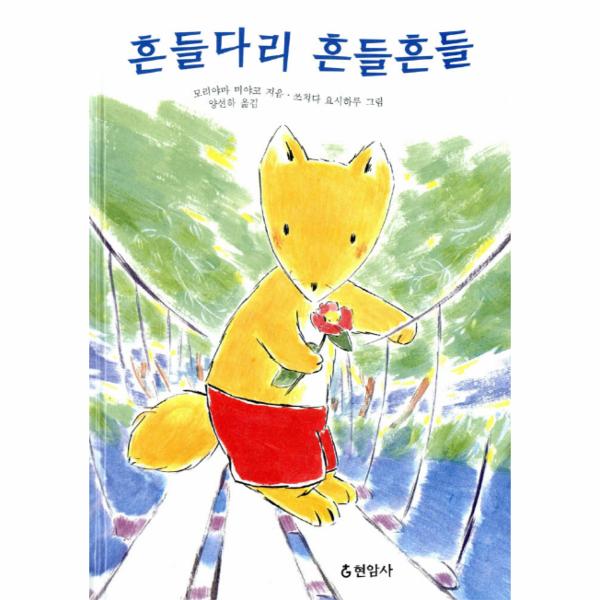 아기여우는 흔들다리 건너편에 같은 또래의 여자 아기여우가 있다는 말을 듣고 그 곳에 놀러 가고 싶어한다. 친구들은 좀더 크면 가자고 하지만, 여우는 지금의 자기만한 여자 아기여우랑 놀고 싶다고 대답한다. 그리고 아무도 없는 새벽녘에 혼자서 조심조심 흔들다리를 건넌다. 첫날은 세 개, 둘째 날은 다섯 개를 건너고, 어떤 날은 다리 건너편을 바라보며 인사를 하고, 빨간 동백꽃 한 송이를 다리 위에 내려 놓기도 하고, 또 다리 건너편을 바라보며 하모니카를 불기도 한다. 처음엔 무서웠지만 조심조심 건너는 사이, 다리 한가운데까지 갈 수 있...