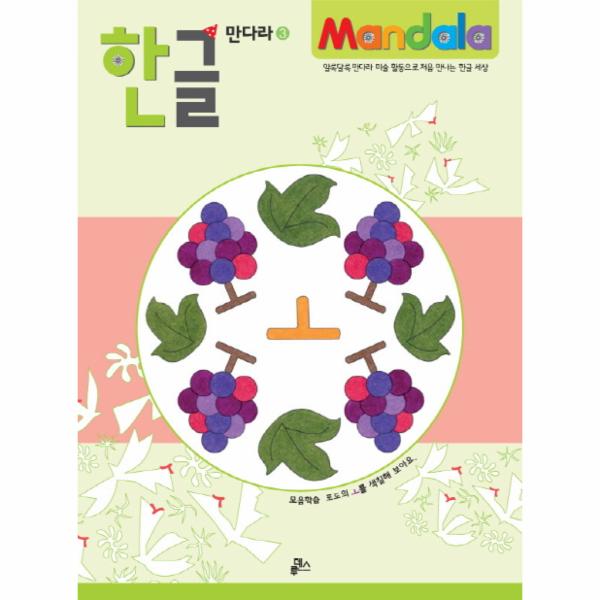 [한글 만다라>는 세계적으로 미술 심리치료에 널리 쓰이고 있는 만다라에 한글과 자연, 명화 학습적 요소를 가미하여 재미있게 한글을 배울 수 있습니다. 그림을 그리면서 형태를 익히고, 음성을 들으면서 습득하고, 쓰면서 한 번 더 확인하는 ‘3방향 학습 방식’으로 구성되어, 한글을 처음 접하는 아이들도 친숙하고 자연스럽게 따라갈 수 있습니다. 뒤표지를 오리면 낱말 카드로 활용할 수 있어 복습까지 확실하게 준비했습니다.