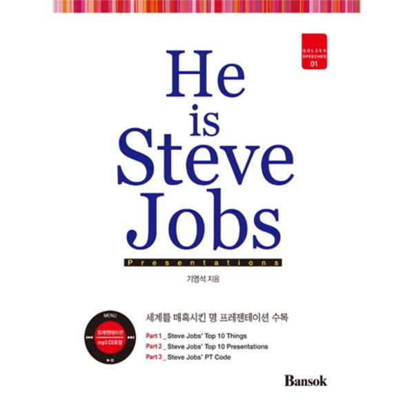 『He is Steve Jobs』는 잡스의 프레젠테이션에 관한 이야기입니다. 스티브 잡스의 극적인 생애는 이미 그의 전기를 통해 세상에 잘 알려져 있습니다. 이 책은 그의 일화가 아닌 드라마틱한 프레젠테이션에 초점을 맞추었습니다. 잡스의 프레젠테이션은 청중의 흥미를 끌며 감동을 줍니다. 잡스는 딱딱한 제품의 기능 설명보다 탄생 배경과 과정을 스토리 중심으로 표현합니다. 그리고 단순하고 열정적이면서도 감동을 주는 언어와 함께 다양한 시연을 선보입니다.
