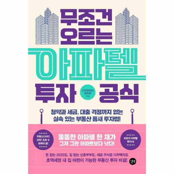 네이버 부동산 카페를 대표하는 ‘부동산 스터디’에 올린 단 하나의 글로 조회수 4만 건, 500개가 넘는 댓글이 달려 단숨에 모든 투자자의 주목을 받은 ‘고라파덕90’. 그 이후로 그가 글을 썼다 하면 평균 200개가 넘는 댓글이 달리고 투자 인사이트를 얻기 위한 문의가 쇄도했다. 그는 자신이 처음 아파텔 투자를 할 때 겪었던 각종 시행착오를 다음 사람들은 겪지 않기를 바라며 자신만의 투자 원칙을 정리하여 한 권의 책으로 엮었다. 대한민국 최초의 아파텔 투자서 《무조건 오르는 아파텔 투자 공식》에는 그런 그의 바람과
