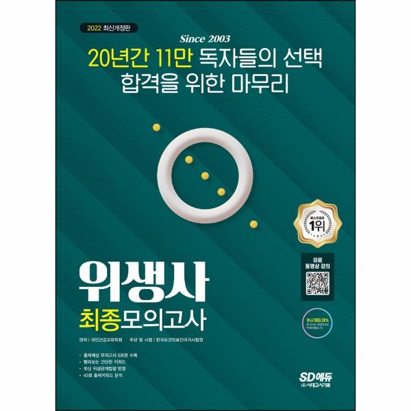 꾸준하게 독자들의 선택을 받아 온 ‘위생사 최종모의고사’가 올해에도 전면개정으로 여러분을 찾아 왔습니다. 본서는 매년 전년도 위생사 시험을 분석하여 도서를 개편하고 있으며, 올해에도 마찬가지로 2021년 기출유사문제를 반영하여 적중률을 높이고자 하였습니다.