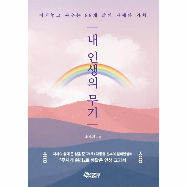 그러나 ‘내 인생의 무기’ 저자 최보기는 그렇지 않다. 남들과 비교하며 괴로웠던 날들, 나의 부족함을 메우기 위해 있지도 않은 잘난 척을 하던 시절, 별 것 아닌 상황에 빈정 상하던 시간들을 보내고 60년 가까운 인생을 살면서 힘들었던 시절에 힘이 되어 주었던 국민 인생교과서로 밀리언셀러가 된 차동엽 신부의 ‘무지개 원리’에서 깨달은 인생이야기에 자신의 경험을 더해 88가지 인생교과서를 출간하게 된다.