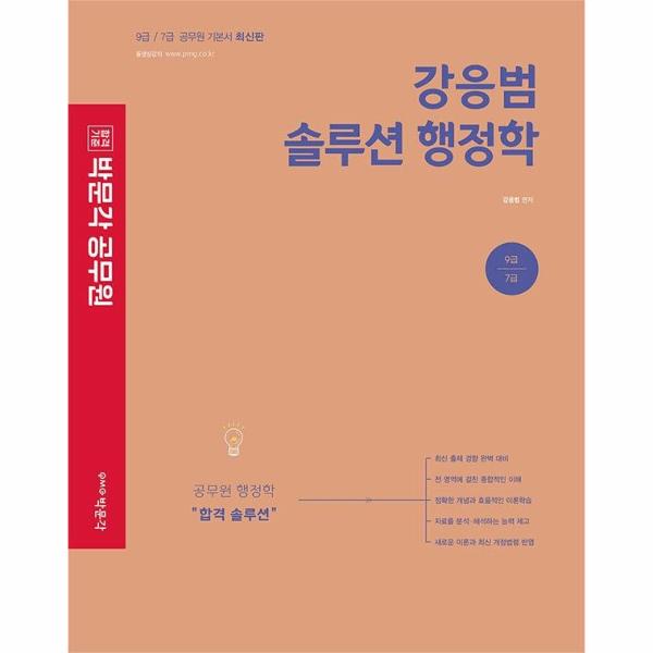 박문각 공무원 기본서 중 하나인「2023 강응범 솔루션 행정학」은 9·7급 국가직·지방직 및 법원·검찰직, 경찰간부, 소방직, 군무원, 교행직 시험을 준비하는 공무원 수험생들을 위한 행정학 기본서입니다.