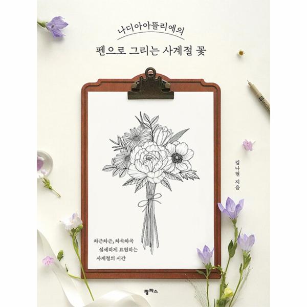 꽃을 그리는 방법은 다양합니다. 하지만 색으로 표현되지 않는 꽃들을 만나는 경험은 색다른 즐거움을 선사할 것입니다. 먼저 펜과 익숙해지는 시간을 가져보세요. 직선과 곡선, 선의 강약을 조절하고, 점묘하는 법 등 펜으로 표현할 수 있는 다양한 기법을 내 손에 익도록 충분히 연습해봅니다. 그리고 펜으로 그릴 꽃을 관찰해보세요. 꽃과 잎의 구조, 꽃의 기본 형태를 자세히 살펴보면 어떻게 그려야 할지 알게 될 것입니다. 이 책은 아름다운 봄꽃, 싱그러운 여름꽃, 그윽한 가을꽃 그리고 매력적인 겨울꽃 그리기로 구성되어 있습니다. 봄의 전령 목련과 봄의 아름다움을 만끽하는 벚꽃, 여름의 쨍함을 간직한 장미와 수국, 가을의 소박함을 느끼게 하는 데이지와 코스모스, 추운 겨울에서 따스함을 간직한 동백꽃과 목화 등을 함께 그려보세요. 사계절의 꽃을 모두 그려보았다면 꽃다발과 보더 장식 등으로 응용해 소중한 사람들에게 선물해보세요. 펜으로 그리는 사계절 꽃들을 만나는 시간, 그리는 그 순간은 물론 하나하나 쌓여가는 꽃들을 보면 행복은 배가 될 것입니다.