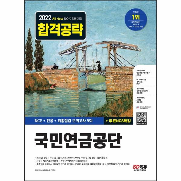 국민연금공단 필기시험 합격을 위해 SD에듀에서는 2022 하반기 채용을 대비하여 국민연금공단 최신 필기전형을 반영해 맞춤형 문제로 구성한 『2022 하반기 All-New 국민연금공단 NCS+전공+최종점검 모의고사 5회+무료NCS특강』을 출간하였다. 상세한 해설로 혼자서도 학습이 가능하도록 하였으며, 온라인 모의고사를 무료로 응시할 수 있는 쿠폰을 제공하여 국민연금공단 문제 유형에 대한 연습과 함께 자신의 실력을 최종 점검할 수 있도록 하였다.