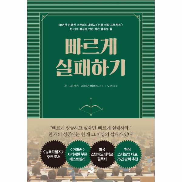 생각해보라. 실수를 한다고 죽지는 않는다. 틀린 말을 하거나 어설픈 아이디어를 따라 한다고 해도 마찬가지다. 오히려 실패를 피하려는 삶이 당신을 구속한다. 알고 있는가? 당신이 버킷리스트를 만들고 6년, 3년, 1년 계획을 세우고 수없이 많은 실천거리에 성공하는 사람들은 매우 작은 행동을 시작한다는 것을 말이다. 실제 실험에 참여한 성공한 이들 대부분은 절대 원칙을 따랐다. 그것은 ‘재빨리 행동에 뛰어들기’다. 그들은 실패를 피할 방법을 찾는데 많은 시간을 쓰지 않는다. 오히려 능력과 지식의 한계를 드러낼 기회를 열심히 찾아다닌다. 이 행동은 들을 무엇이든 재빨리 배우게 만든다. 그리고 미숙한 준비야말로 성장을 위한 최적의 조건임을 깨닫게 한다. 반대로 실패하는 사람의 공통점은 준비가 덜 된 것을 시작하지 않아야 할 신호로 여긴다. 그리고 계획을 새롭게 바꿔 볼 궁리를 한다