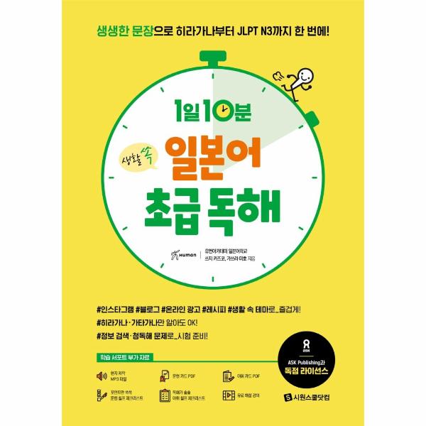 베스트셀러, 스테디셀러 일본어 교재를 다수 배출한 일본 ASK 출판사와 시원스쿨 일본어의 독점 라이선스 파트너십으로 탄생한 신개념 독해 교재. 시원스쿨 일본어 전문 연구진의 콘텐츠 노하우를 더해 국내 학습자들을 위해 한국어판 교재로 재탄생했습니다.
