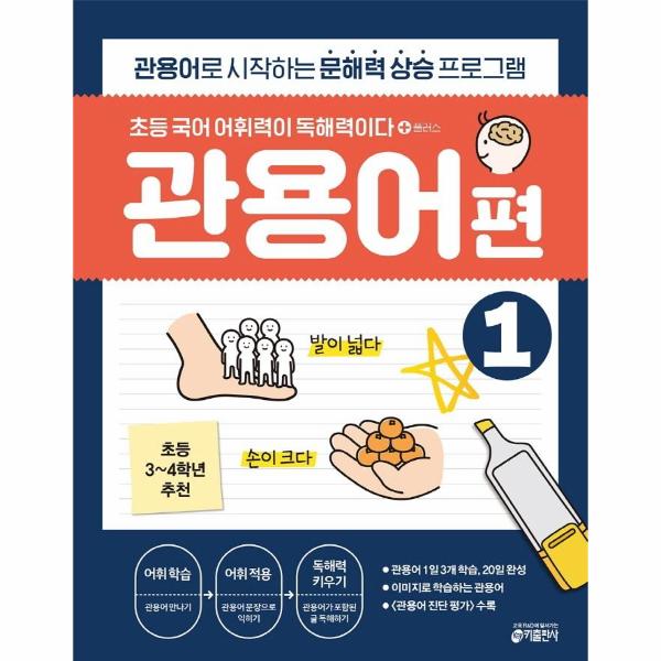 뜻은 물론이고 문맥과 쓰임새까지 알아야 하는 관용어 학습법은 기존의 어휘 학습법과 다르기 때문에 아이들이 어렵고 낯설게 느낄 수 있습니다. 『초등 국어 어휘력이 독해력이다 플러스 관용어편1』은 익숙한 주제인 ‘몸’과 관련된 관용어로 구성되어 있습니다. 따라서 관용어를 쉽고 재미있게 학습할 수 있으며, 그동안 어렵게 느껴졌던 관용어 학습에 대한 첫 발을 뗄 수 있습니다.