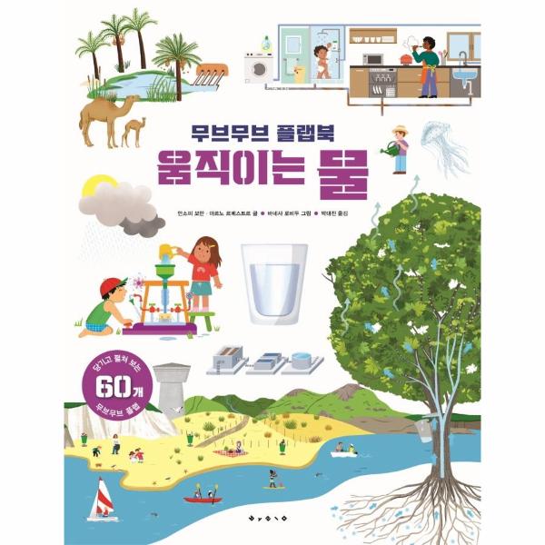 ‘접힌 책장을 열어’ 지구의 물이 어디서 왔는지, 우주에도 물이 있는지 알아보아요. ‘팝업을 세워’ 바다에서 구름으로, 구름에서 강으로, 강에서 다시 바다로 물이 순환하는 과정을 이해해 보아요. ‘탭을 잡아당겨’ 우리 몸속에서 물이 어떻게 이동하는지 들여다봐요. ‘플랩을 들추면’ 물이 거의 없는 사막에서는 동식물들이 어떻게 적응하여 살아가는지 알 수 있답니다! 여러분의 손으로 직접 열고, 돌리고, 당기고, 움직이며 우리가 몰랐던 매혹적인 물의 세계를 발견해 보세요.
