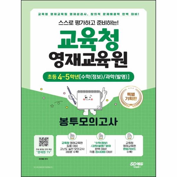영재교육원에 대한 관심과 선호도 급증으로 인한 실전 시험지 형태의 모의고사의 필요성이 대두되고 있습니다. 이에 따라 교육청 영재교육원을 준비하는 구매자층을 위한 맞춤형 모의고사 형식의 문제집을 출간하였습니다. 실제 시험지 형태의 3회 모의고사(각 회차당 40문제(수학(정보 20문제 + 과학(발명 20문제와 교육청 영재교육원 소개 및 면접가이드, 정답 및 해설로 구성되었습니다.