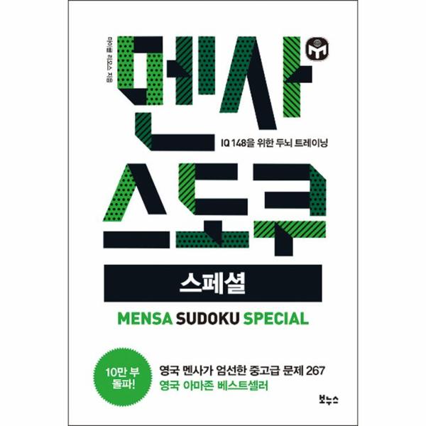 가로줄, 세로줄, 3×3 박스에 1부터 9까지 겹치지 않게 채워라! 스도쿠의 규칙은 이 한 가지뿐이다. 매우 단순해 보이지만, 스도쿠의 세계에 한번 발을 들여놓으면 ‘중독’에 빠지는 것은 시간문제다. 무작정 숫자를 찾는 것이 아니라 한 칸 한 칸 채울 때마다 논리적 사고와 추론을 동원해야 하는 스도쿠의 특성 때문이다. 머리를 쥐어짠 끝에 마침내 모든 칸이 채워지는 순간의 희열은 스도쿠 퍼즐 마니아라면 누구나 공감할 것이다. 그런데 일단 스도쿠 신참 딱지를 떼고 문제 풀이의 속도가 슬슬 빨라지면 보다 험난하고 차원 높은 문제에 도전하고 싶은 열망이 생기게 마련이다. 《멘사 스도쿠 스페셜》은 이러한 경지에 접어든 이들을 위한 책이다.