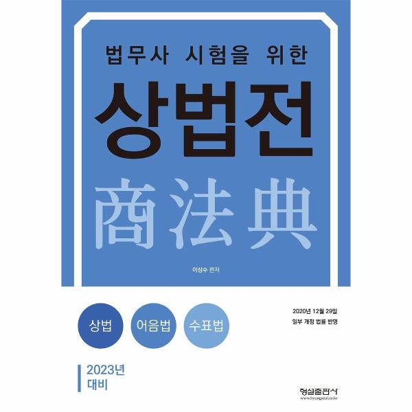이번 2023년 대비를 위한 『상법전』은 첫째, 2022년 법무사 시험 제28회 기출문제의 지문을 보완하여 수록하였고, 최신 대법원 판례를 반영하여 지문을 수정 보완하였다.
