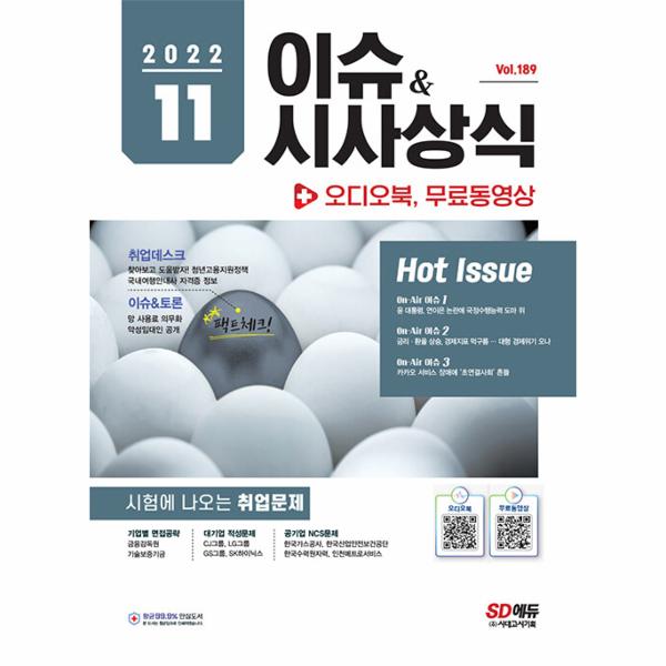 ·취업 합격의 공식 <이슈&시사상식>은 최신 시사상식, 찬반토론, 취업 필기시험 및 면접 준비, 대입 논술 및 구술면접 대비, 시사용어 및 인물 소개, 논술 실전 칼럼, NCS 직업기초능력 탐구, 자기소개서 작성 요령, 면접 스피치, 공모전·대외활동 정보, 직무 소개까지 취업준비생에게 필요한 모든 콘텐츠를 망라했습니다. 그뿐만 아니라 시사상식 퀴즈, 인적성 및 NCS 문제, 공기업·대기업·언론사 상식 기출문제, 한국사능력검정시험까지 접할 수 있어 상식의 스펙트럼을 더욱 넓혀주는 상식 전문 월간지입니다.