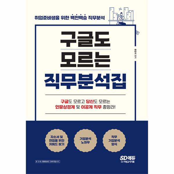 『구글도 모르는 직무분석집』은 인문상경계 직무와 이공계 직무로 나누어 취업준비생들을 위한 다양한 직무를 총망라했다. 인문상경계 스터디와 이공계 스터디에 참여한 스터디원들의 다양한 실제 사례와 직무별 세부 정보, 우수 자기소개서 사례 등을 통해 자신도 몰랐던 스펙이 무엇인지, 본인에게 가장 적합한 직무가 무엇인지, 또 취업 성공을 위해서 과연 무엇을 준비해야 하는지 함께 고민하고 깨닫는 시간이 될 것이다.