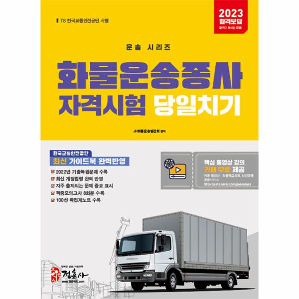 필수 학습사항인 [화물취급요령, 안전운행, 운송서비스] 관련 내용을 무료 동영상 강의로 만나볼 수 있습니다. 본 책 2페이지에 있는 <2023 화물 필기 무료 동영상 보는 방법>을 참고하시어 인증하면 바로 학습이 가능하며, 중요 내용만을 콕 찍어 공부할 수 있습니다.