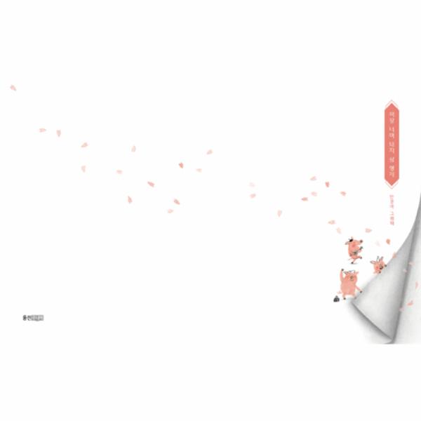 가로로 기름한 책장을 넘기면 텅 빈 들판에 돼지 삼 형제가 나타납니다. 처음엔 초가를, 다음엔 나무집을, 그다음엔 벽돌집을 짓는 돼지들의 모습을 바라보고 있으면 익숙한 고전이 떠오릅니다. 1886년 발표 당시 모범성이 강조되던 시대에 게으름을 피우거나 일을 대강대강 처리해서는 안 된다는 메시지로 대중적 사랑을 받았던 영국의 옛이야기 <아기 돼지 삼 형제>이지요. 여