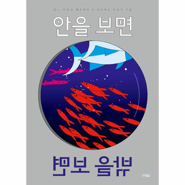 <안을 보면 밖을 보면>을 지은 안느-마르고 램스타인과 마티아스 아르귀는 프랑스에서 활동하는 듀오 작가입니다. 프랑스 스트라스부르그 미술학교에서 함께 공부하며 친구가 된 둘은 2011년 처음 함께 작업한 그림책 <알파벳 소동>을 시작으로 꾸준히 합동 작업을 이어 가고 있습니다. 두 작가는 시간의 흐름을 관찰한 그림책 <시작 다음>으로 2015년 볼로냐 라가치상 논픽션 부문 대상을 받았습니다. 봉오리가 꽃이 되고 무성했던 숲이 다듬어진 정원이 되며 평화로이 항해하던 배가 퍼붓는 비에 난파되는 등 세상의 여러 풍경을 ‘전과 후’로 나누어 독자들에게 독특한 예술 체험을 선사했지요. 이들은 신작 그림책 <안을 보면 밖을 보면>을 통해 다시 한 번 관찰의 즐거움을 세상에 선물합니다. 여러 대상의 안과 밖 풍경을 번갈아 보여 주며 세상 구석구석을 관찰하게 하는 이 책은 한쪽에서는 발견하기 힘든 현상의 이면을 보도록 유도합니다. 요동치는 심장을 근접한 시점에서 묘사한 그림과 높은 다리 위에서 번지 점프하는 사람 그림 사이의 간극에 어떤 이야기가 숨어 있을까요? 다른 페이지로 넘어가 보면, 안에서는 운전사 눈앞에 멋진 풍경이 펼쳐지지만 밖에서는 운전사의 차 뒤로 길게 늘어선 교통 정체 상황을 보게 됩니다. 또, 안에서 보면 휘몰아치는 눈보라를 꿋꿋이 견디고 있는 성곽이 밖에서 보면 스노우볼 안에 든 미니어처 장식물이 됩니다. 이렇듯 이 그림책은 세상의 다양한 이면을 통해 현상 너머를 헤아리는 폭넓고 사려 깊은 상상의 길로 인도합니다.