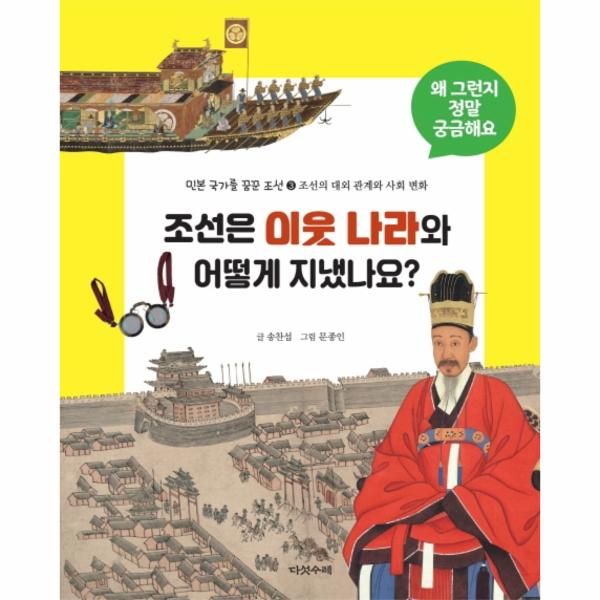 민본 국가를 꿈꾼 조선 3《조선은 이웃 나라와 어떻게 지냈나요?》에서는 조선과 주변국들 간의 교류나 전쟁에 대한 주제뿐 아니라 조선 시대의 도로, 백성을 위한 정책, 마을공동체 같은 당시 사람들의 삶을 들여다볼 수 있는 다양한 주제들을 다룹니다. 80여 점의 도판과 전문가의 감수를 거친 지도·삽화는 어린이들이 조선의 대외 관계와 사회 변화의 역사를 생생하게 느낄 수 있도록 합니다. ‘민본 국가를 꿈꾼 조선’은 1. 조선의 건국과 생활 문화 2. 조선의 학문과 예술 3. 조선의 대외 관계와 사회 변화 전 3권으로 출간됐습니다.