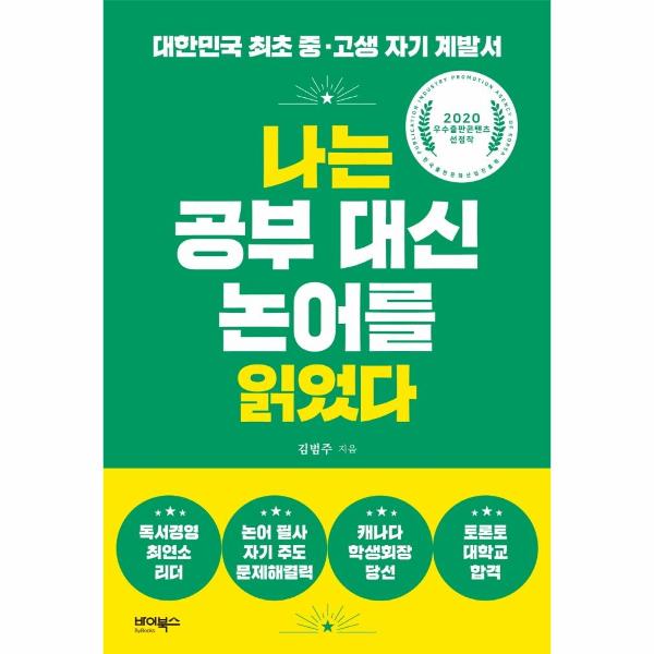 저자 김범주는 캐나다 윌로데일 고등학교에 3학년 재학 중에 전교학생회장이었다. 이 스펙만 들으면 성적 고민 따윈 없다고 지레 짐작할지도 모른다. 하지만 중3 때 미국 단기 유학을 떠나기 전까지 학교 성적은 전교 최하위권이었다. 그런데 사춘기와 반항이 시작될 중1 무렵 우연히 나간 독서 모임이 계기가 되어 책과 친해질 수 있었다. 또한 논어 필사를 통해 정신적인 성장을 경험했다.
