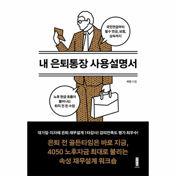 “몸이 아픈데 보험 추가로 가입할까요?”, “개인연금 수익률 2%, 해약해야 하나요?”, “퇴직금 받아 카페 차리지 말라고요?” 중년 직장인들이 유일하게 졸지 않고 듣는 강의로 유명한 ‘은퇴 재무설계’ 수업에는 퇴직을 앞둔 직장인들의 절박하고 현실적인 질문이 쏟아진다. 많은 질문들은 노후 현금흐름 늘릴 방법과 현명한 노후 자산 관리법으로 귀결된다. 저자는 퇴직을 앞둔 직장인들을 위해 은퇴한 선배들이 놓쳐서 후회하는 핵심 정보를 책에 담았다.