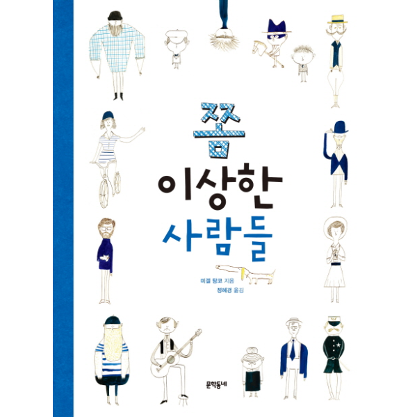 이 그림책은 제목처럼, ‘쫌 이상한 사람들’에 대한 이야기입니다. 책 속에 등장하는 사람들의 모습은 이렇습니다. 괴상한 걸음걸이로 행인의 이목을 끄는 호리호리한 사람은 사실 개미를 밟을까 봐 조심하는 중입니다. 수염을 맵시 나게 다듬은 어떤 사람은 신이 나 뛰노는 여러 마리 개들 중에서도 혼자 있는 개를 한눈에 알아보지요. 텅 빈 객석을 앞에 두고 황홀경에 빠져 연주하는 악단, 아무도 없는 해변에서 남의 발자국 위를 골라 밟으며 걷는 사람, 괜히 나무를 꼭 안아 주는 사람들 등등 책장마다 등장하는 사람들을 살펴보세...
