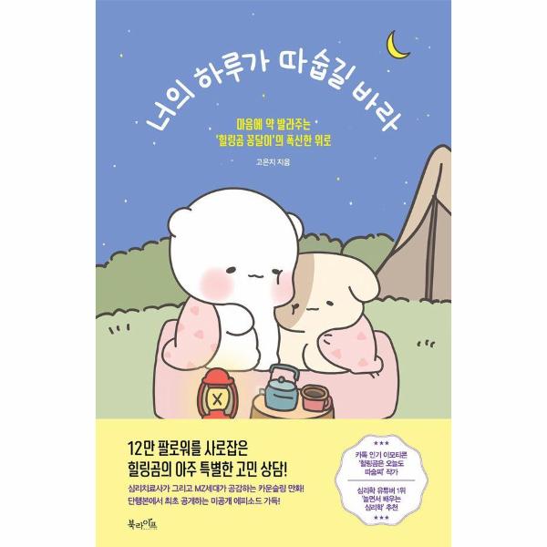 마음의 고민을 다정하면서도 따뜻한 조언들로 해결해주는 책! 인스타그램에서 12만 MZ세대의 폭발적인 사랑을 받으며 출시하는 이모티콘마다 화제의 중심에 선 ‘힐링곰 꽁달이’의 첫 단행본 《너의 하루가 따숩길 바라》는 사랑스러운 캐릭터와 심리치료사 작가 특유의 전문적인 조언을 가볍게 만나볼 수 있는 말랑한 책으로, 읽다 보면 다시 해보겠다는 용기와 응원을 얻을 수 있다.