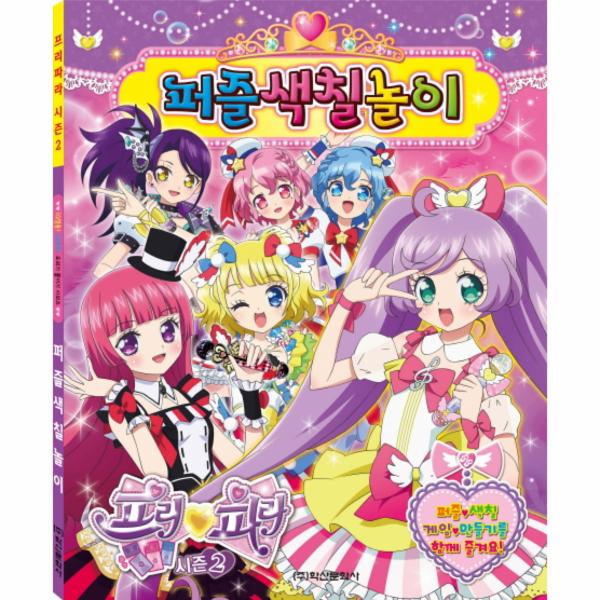 프리파라 친구들의 이미지로 흩어진 퍼즐 조각들을 직접 가위로 오리거나