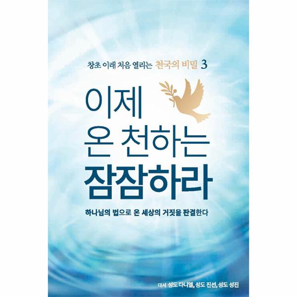 “이제 온 천하는 잠잠하라” 3권은 1, 2권에 이어 진리의 성령께서 대언하시는 말씀을 기록한 책으로 조선일보, 동아일보에 매주 전면 광고에 실리고 있는 글을 모아 만든 책이다. 이 책은 왜 이제 온 천하는 잠잠해야 하는지 하나님께서 정하신 때에 정하신 뜻과 계획에 대해 밝히고 있다. 예수 그리스도도, 성경을 기록한 40여 명의 저자들도 알지 못했던 하나님 나라, 곧 천국의 비밀에 대해 창세 이래 처음 밝히는 책이다.