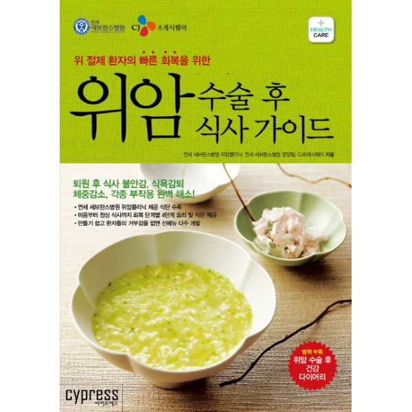 위암 환자들은 입원 기간 동안에는 병원의 관리를 받지만, 막상 퇴원 후 가정으로 돌아가면 먹는 것과의 전쟁이 시작된다. 어떤 음식을 먹어야 할지 말아야 할지, 어떻게 조리해서 먹어야 할지, 얼마큼 먹어야 할지 등 먹는 것 자체가 두려움이자 스트레스가 되는 경우가 허다하다. 이 책에는 위암의 진단 및 증상, 치료방법, 발병 후 식사 원칙, 부작용 대처법 그리고 재발 방지 요령까지 위암에 관해 총망라되어 있다. 또한 이 책의 가장 큰 특징은 세브란스병원 위암클리닉이 그 동안 환자들과 보호자들이 가장 고민해온 식사 문제를 ‘미음 단계→죽 단계→된죽 단계→밥 단계’ 등 환자의 회복 단계를 총 4단계로 나누어 맞춤형 식사법을 제시한다는 점이다. 회복 단계별로 제시된 맞춤형 요리와 3가지 타입의 식단은 퇴원 후 가정에서 참고하기에 더할 나위 없이 좋다. 특히 세브란스병원 위암클리닉과 영양팀, CJ프레시웨이가 공동 개발한 80가지 메뉴는 환자들의 식감을 돋우고, 소화가 잘되며, 영양소가 풍부하여 수술 후 식욕감퇴, 식사 공포감, 체중감소, 각종 부작용 등으로 고생하는 환자들에게 큰 도움이 된다. 그리고 다양한 환자사례를 실어 자신의 증상과 비교하며 대처할 수 있는 방법을 제시하고, 식생활에 관한 다양한 궁금증을 해소하고자 ‘따르릉~영양상담실입니다’ 코너를 삽입하였다. 마지막으로