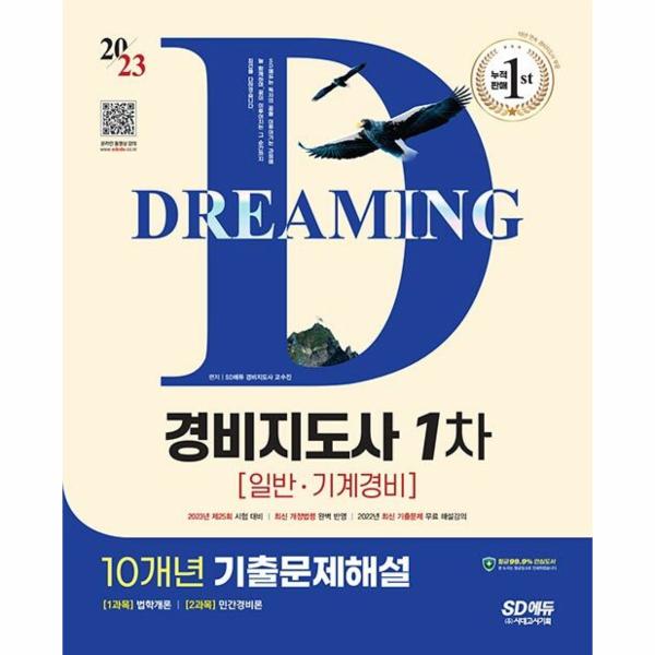 경비지도사 시험의 응시율이 해마다 높아지고 있고 상대평가로 인한 경쟁도 치열해지고 있는 상황에서, 수험생들이 보다 쉽고 완벽하게 자격증을 취득할 수 있도록 SD에듀 경비지도사 교수진들이 “2023 SD에듀 경비지도사 1차 10개년 기출문제해설 [일반·기계경비]”를 출간하게 되었습니다. 18년간 누적 판매량 1위에 빛나는 SD에듀 경비지도사 시리즈를 통해 합격의 기쁨을 누리시길 바랍니다.