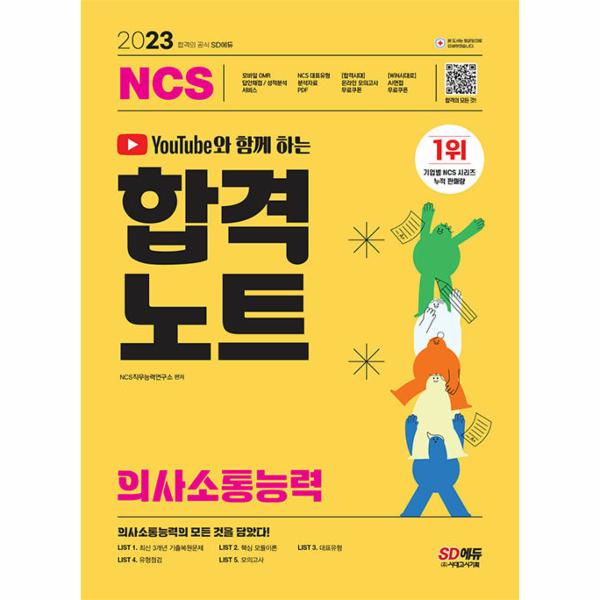 공사·공단 필기시험 합격을 위해 SD에듀에서는 2023년 채용을 대비하여 의사소통능력 맞춤형 문제로 구성한 『유튜브와 함께 하는 2023 NCS 의사소통능력 합격노트』를 출간하였다. 상세한 해설로 혼자서도 학습이 가능하도록 하였으며, NCS통합과 핏모의고사를 무료로 응시할 수 있는 온라인 모의고사 쿠폰을 발급하여 의사소통능력 문제 유형에 대한 연습과 함께 자신의 실력을 최종 점검할 수 있도록 하였다.