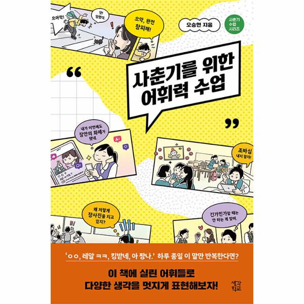 생각학교 출판사에서는 쑥쑥 성장하는 1318들이 익히고 알아야 하는 지식을 쏙쏙 모아놓은 ‘사춘기 수업 시리즈’를 출간하고 있다. 이번에 출간되는 『사춘기를 위한 어휘력 수업』은 모국어 구사 능력이 폭발적으로 성장하는 1318 친구들이 꼭 알아야 하는 어휘들을 중심으로 구성되어 있다. 우리말은 한자어를 기반으로 한 단어들이 많기 때문에 한자의 뜻을 모르면 어휘력 성장에도 제약이 생긴다. 저자는 청소년들의 어휘력 향상을 위해 단어의 기원을 살펴본다. 이를테면 모자라고 어리석은 사람을 가리키는 ‘숙맥(菽麥’은 콩과 보리를 구별하지 못하는 사람이라는 의미에서 왔고, 필요 이상으로 걱정하는 마음을 뜻하는 ‘노파심(老婆心’은 지나치게 염려하는 할머니 마음이라는 뜻을 담고 있다는 것이다. 그래서 이 책을 읽다 보면 우리가 무심하게 사용하는 말 속에 생각보다 많은 이야기가 담겨 있음을 배우게 된다. 저자는 이야기를 통해 한자어를 비롯한 다양한 어휘를 자연스럽게 알려주고, 그 말에서 생겨난 파생어들도 함께 소개한다.