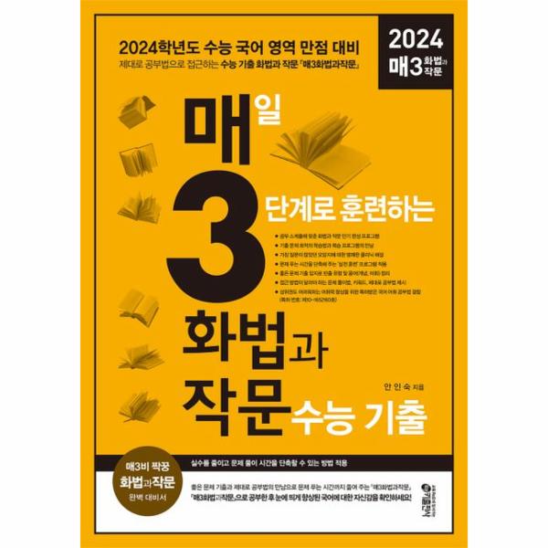 이 학생들의 고민을 해결하는 과정에서 탄생한 『매3화법과작문』은 단순한 기출 문제집이 아니다. 제대로 공부법이 결합된 『매3화법과작문』으로, ‘매일 복습 확인 문제’까지 챙겨 보며 공부하면 수능 1교시가 주는 부담감과 긴장감도 떨칠 수 있고, 실수와 문제 풀이 시간까지 줄일 수 있다.