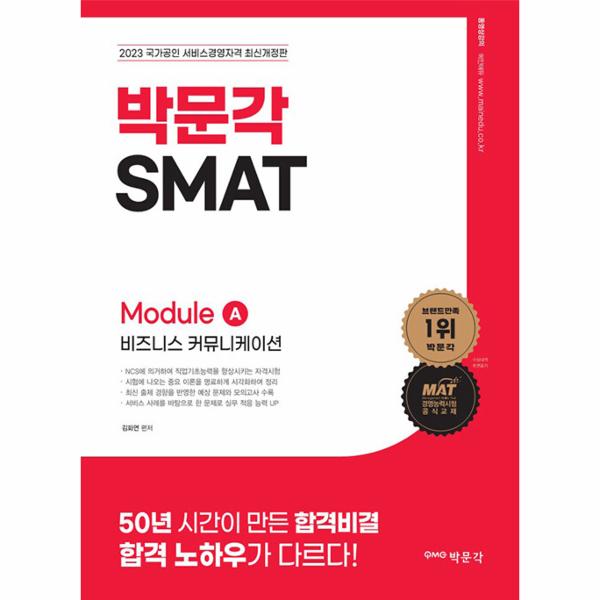 SMAT는 서비스 실무형 자격시험이지만 취득 등급에 따라 학점 인정도 가능하다. SMAT 공식 교재인 박문각의 ??2023 SMAT Module A 비즈니스 커뮤니케이션??으로 서비스 분야의 전문성을 기르길 바란다.
