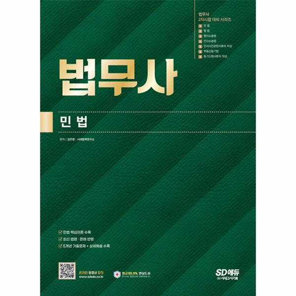 「법무사 2차시험 민법」은 법무사시험을 준비하는 수험생들에게 가장 확실한 합격의 길을 제시하기 위한 수험서로, 단 한 과목도 소홀히 할 수 없는 수험생 여러분을 위하여 최신 출제경향과 학계동향을 반영한 핵심이론과, 주요 기출문제 및 상세해설을 한 권에 모두 수록하여 효율적인 시험준비에 도움이 되고자 하였습니다.