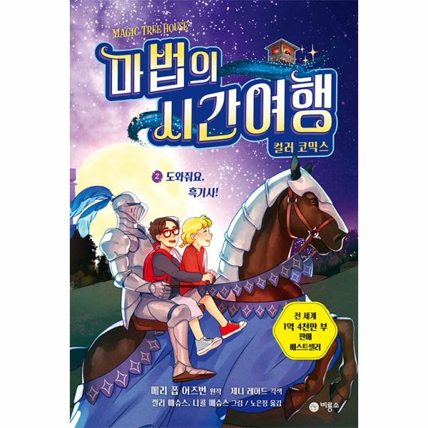 컬러 만화로 선보이는 「마법의 시간여행 컬러 코믹스」 시리즈는 역사 속의 장소로 모험을 떠나는 잭과 애니의 짜릿한 타임 슬립 여행을 다채로운 이미지로 보여 준다. 인물들의 행동을 그림으로 보고, 대사는 발화 주체를 그림으로 구분해 가며 볼 수 있어서 더욱더 이해하기가 쉽다. 짧은 글과 풍부한 그림 덕분에 긴 글 읽기가 익숙하지 않은 독자도 어렵지 않게 완독할 수 있어 책 읽기의 재미를 붙이기에 좋다. 또한 티라노사우루스에 쫓기는 잭의 진땀 나는 상황, 어두운 밤 커다란 성에 몰래 들어가서 마주한 중세 사람들의 모습, 고대 이집트의 피라미드 안쪽에서 마주한 여왕의 무덤 등 역사와 판타지가 어우러진 모험을 통해서 이야기를 읽는 즐거움을 느끼게 한다.