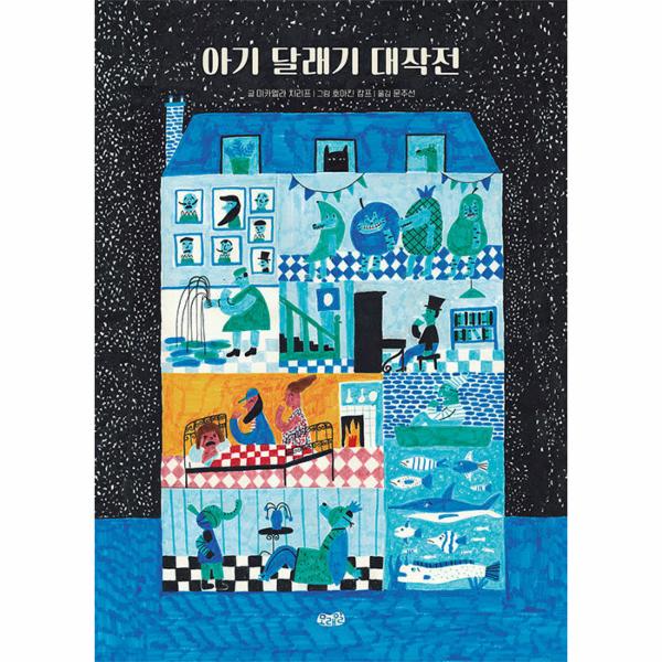 『아기 달래기 대작전』은 현실에서 벌어지는 난감한 상황을 유머러스하면서도 다정하게 그린 그림책입니다. 뉴욕 공공도서관 선정 ‘2022 좋은 어린이책 베스트 10’, ‘2022 천보추이 국제아동문학상’ 롱리스트에 선정되어 국제적으로 가치를 인정받았습니다. 아기가 시끄럽게 울어서 밤새 잠을 잘 수 없다면 누구나 지치고 힘들 거예요. 이 책에서도 마찬가지입니다. 이 이야기를 끌어 가는 어린이 화자의 동생 엘리사는 밤새 울음을 멈추지 않아요. 아빠와 엄마는 엘리사를 달래기 위해 애를 써 보지만 소용이 없습니다. 같은 건물에 살고 있는 이웃들이 차례로 찾아와 자신들이 생각하는 방법으로 아기를 달래 보지만, 울음을 멈추는 데 실패합니다. 결국 엘리사의 가족들과 이웃들은 밤을 꼬박 새게 되지요.