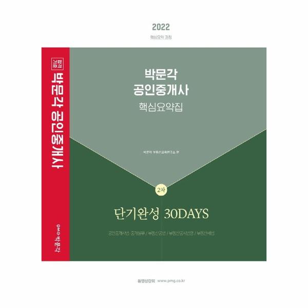 『2022 박문각 공인중개사 2차 핵심요약집 단기완성 30DAYS』는 2022년 제33회 공인중개사 자격시험을 대비한 요약서입니다.
